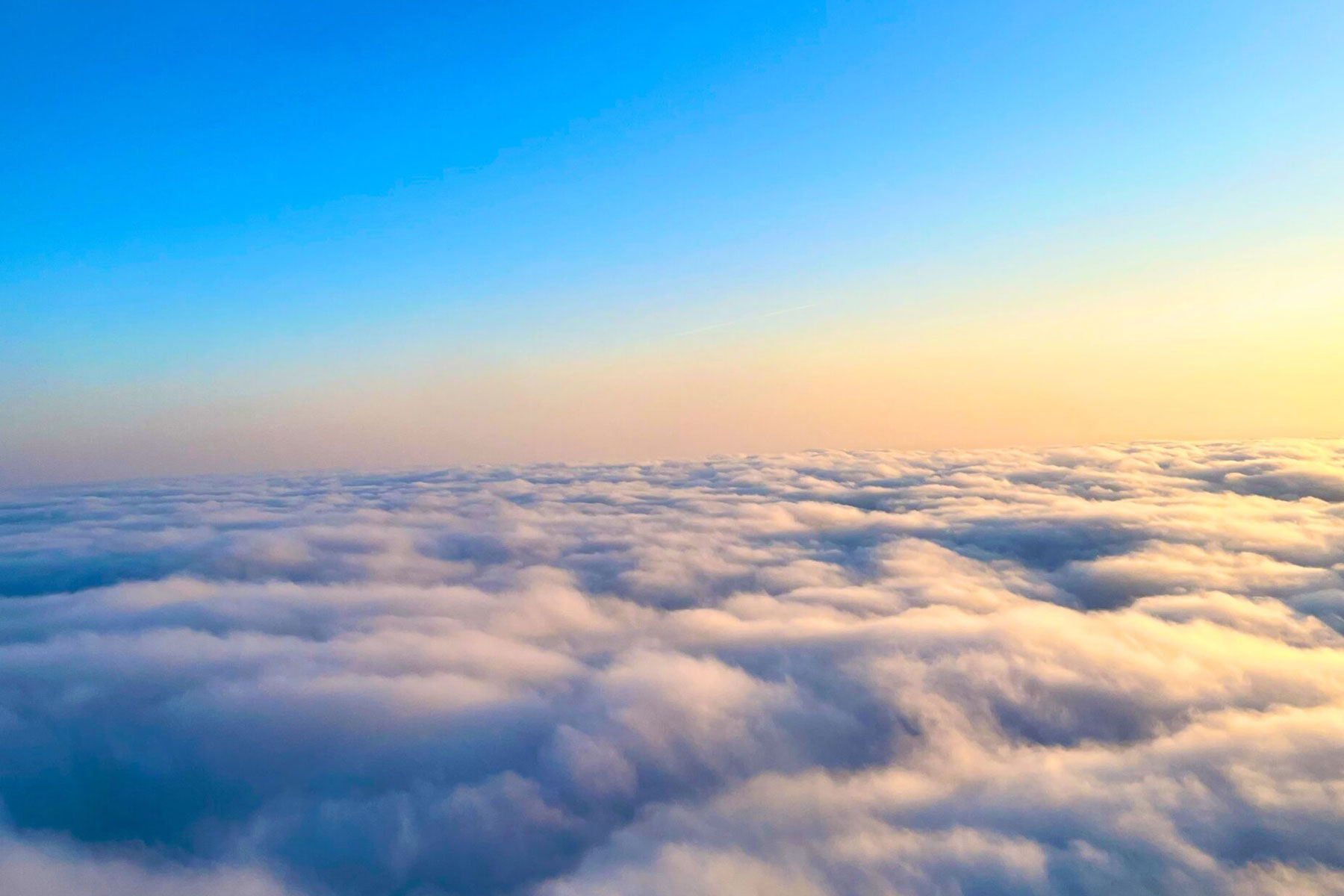 I love the window seat of a plane because you get the best views of the sky. The day I flew out, it was particularly gloomy and gray. All I saw were the thick, dark, clouds above. But, as the plane took off and ascended, we soon started rapidly flying through the clouds, and then eventually above the clouds.