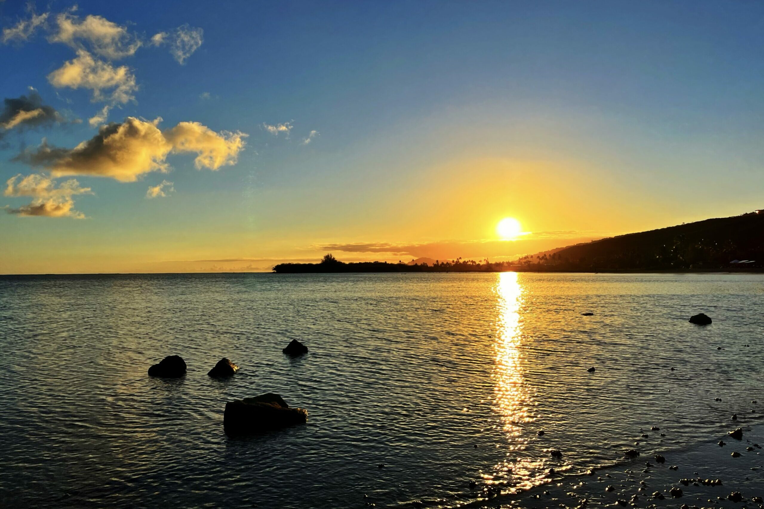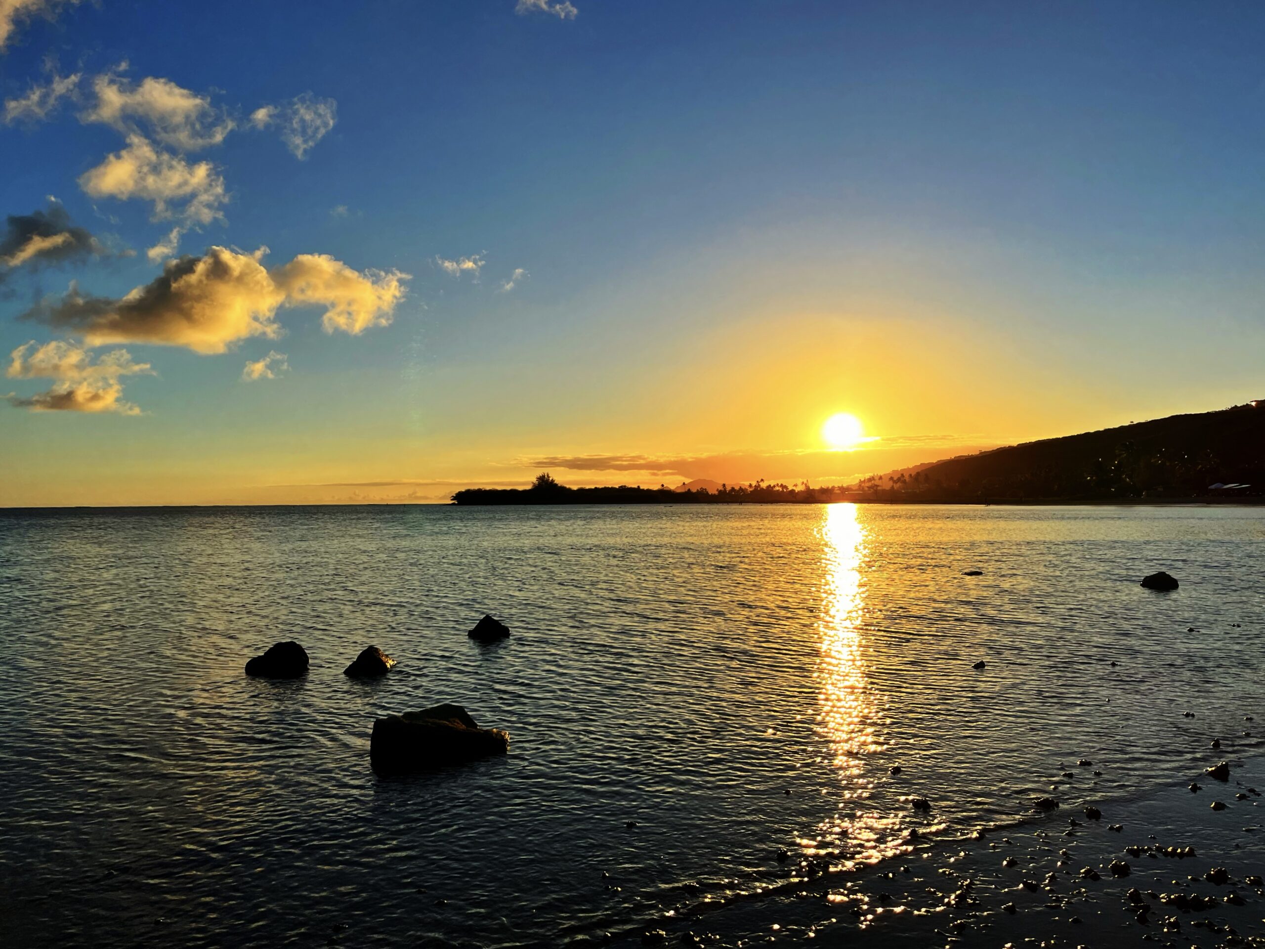 I recently had some time to travel home to Hawaii for the weekend. When I go home, my priorities are few: family, food, creation. Hawaii is beautiful, and my absolute favorite parts of the beauty are the sunsets and sunrises. While catching a sunset at a bay near my home, I snapped a photo and sent it to my dear friend who I know also enjoys a good golden hour’.” She replied with this: “God’s greatest gift, no two sunsets are the same. It forces you to be present, and grateful and realize everything is so much bigger than you.”